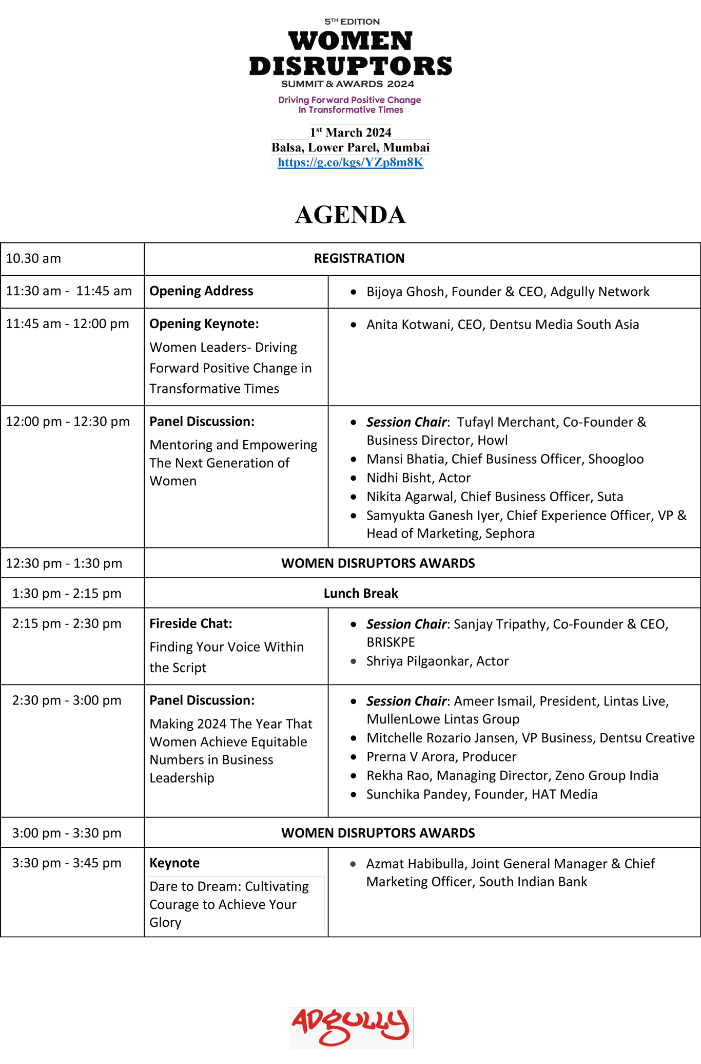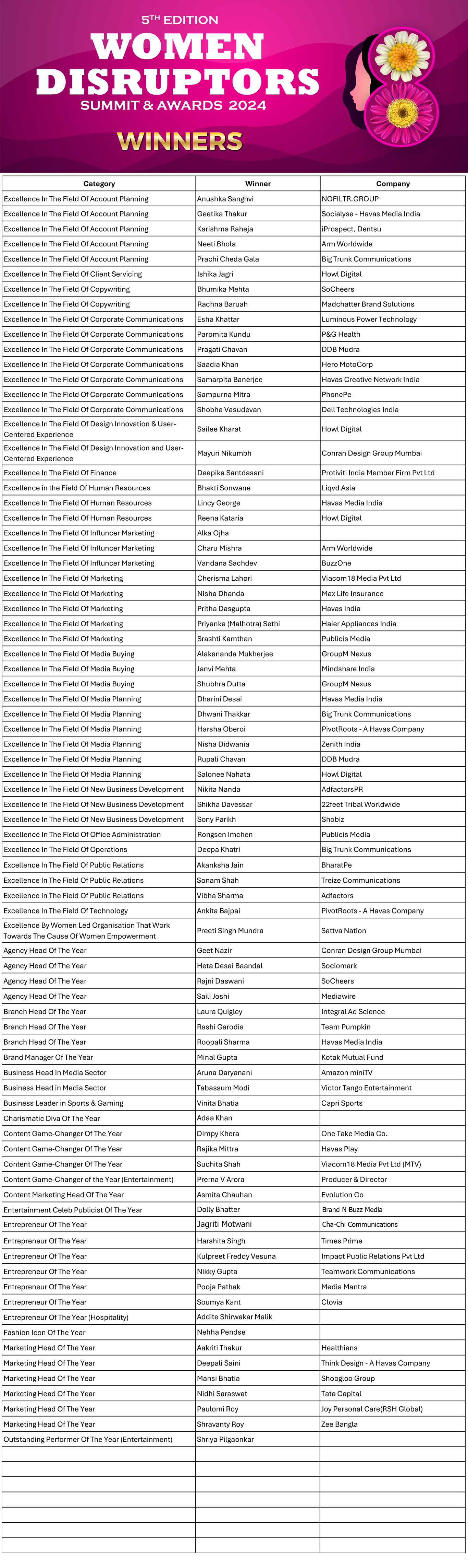 Adgully proudly presents the Fifth edition of WOMEN DISRUPTORS 2024.